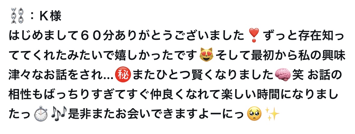 ✉️:フリーでお会いしたY様