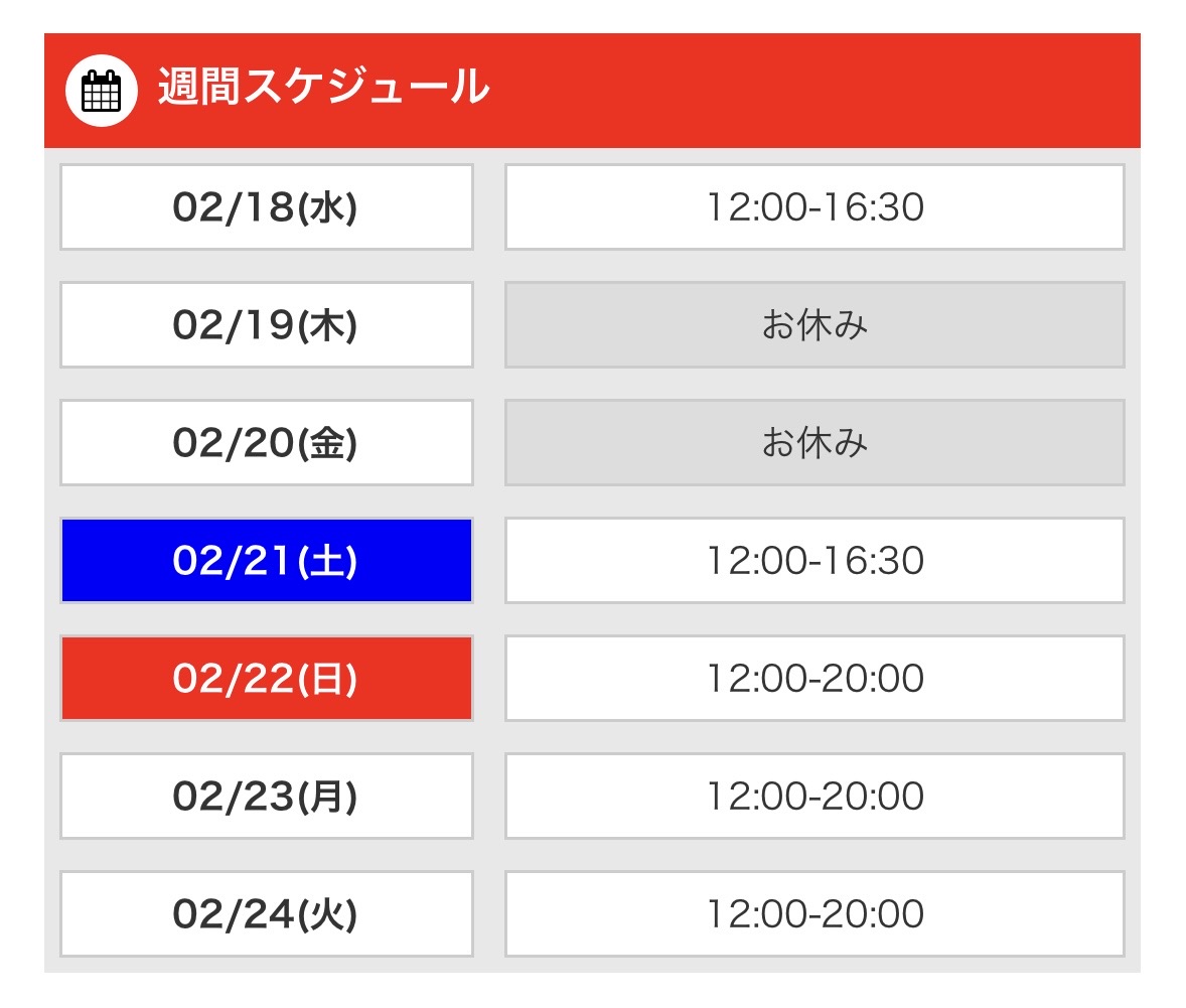 今日18日は16:30までで