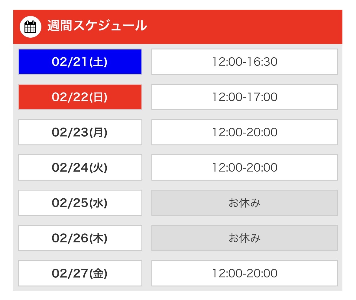 明日22日(日)は12-17になりました!